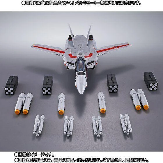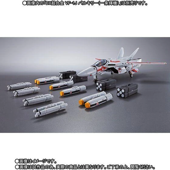 New from Bandai – Missile parts to enhance your Chogokin VF-1J model! Missile set only. VF-1J model sold separately. Set Contents · Micro missile pod × 4· Large anti-ship reactive bullet (connected type) × 2 sets· Large anti-ship reactive bullet × 2· Missile × 12· Mounting joints NOTE: We cannot guarantee box condition any DX Chogokin Macross items