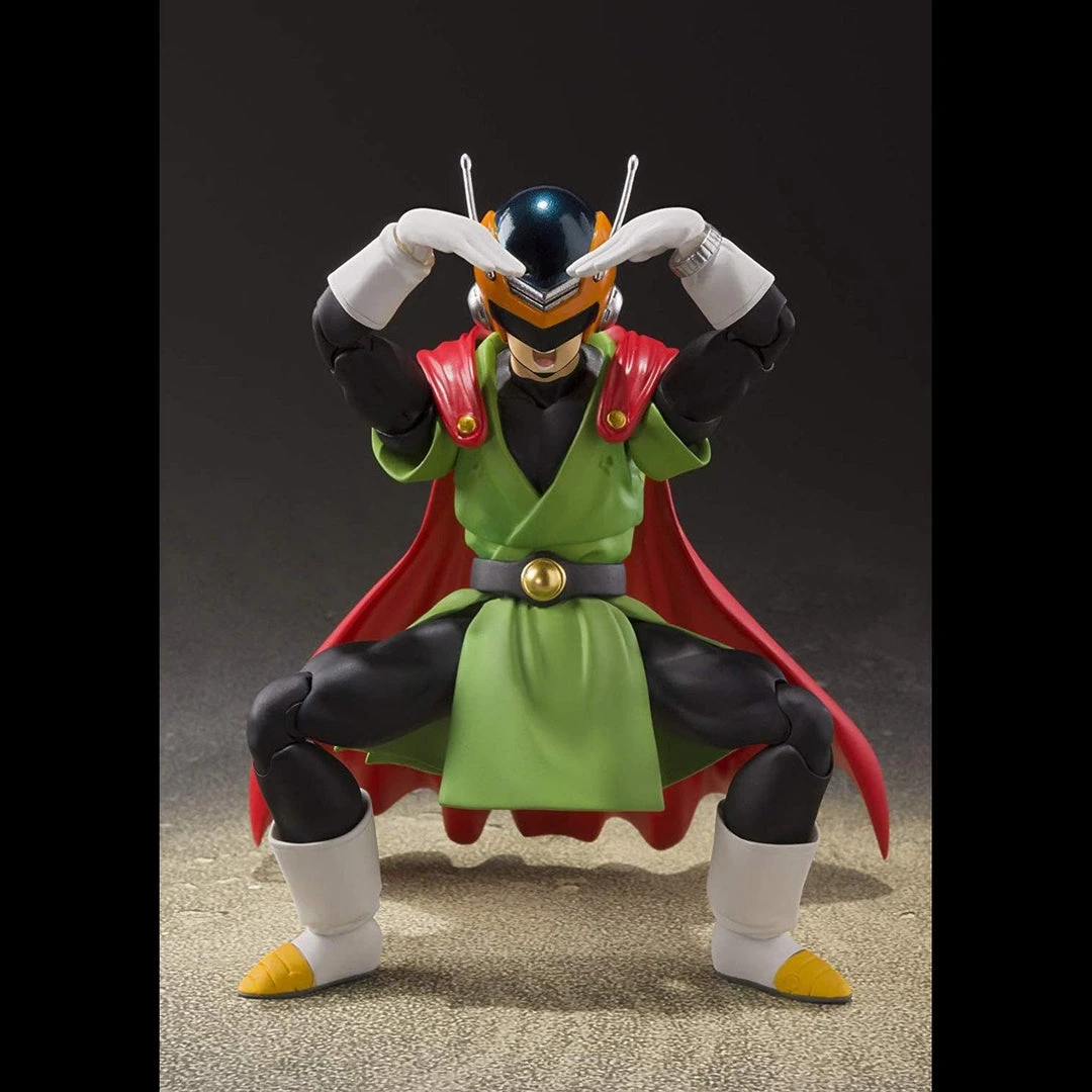 “I am Great Saiyaman, a hero for justice!” This special set includes an optional mouth, a turban, Son Gohan, and a SS2 Son Gohan optional head! The cape can be attached on the left shoulder for dramatic displays. The set includes four pairs of optional hands, one optional left arm, one optional mouth. three optional heads, a cape, and two optional antenna.
