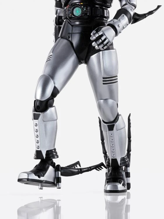 Shadow Moon, from “Kamen Rider Black,” joins the Shinkocchou Seiho series! Utilizing the same flexible material from the separately-sold Masked Rider Black figure, this figure includes two types of Leg Trigger, one for posability and one for replicating walking scenes! Two types of pants are included so that you can choose between looks and poseability as needed. Also includes parts for letting the S.H.Figuarts Kamen Rider BLACK (SOLD SEPARATELY) hold the Satan Saber, enhancing your display possibilities! The insect-like spines on the legs are hinged, and you can swap the shafts for distinctive walking scenes.
