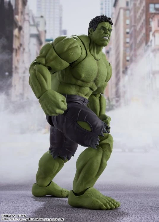 Hulk smash! The Incredible Hulk, as seen in the Avengers films, joins S.H.Figuarts with a completely new sculpt. Powerful musculature is captured with cutting-edge posing technology. Digital coloring faithfully captures his appearance and facial features. The Avengers assemble when you combine Hulk with the other heroes (sold separately)! Set Contents: Main body, Two optional heads, Two pairs of optional hands
