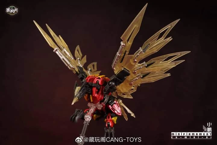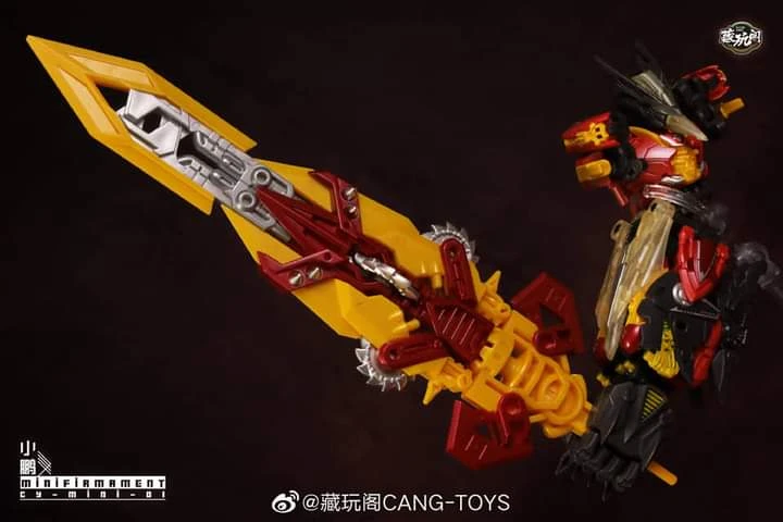 The first in the Cang-Toys’ mini transforming figure series – CY-Mini-03 Firmini! Convert this beast-like creature into two forms: standing robot, or the left arm of a larger combining figure. Firmini stands about 4 inches tall while in robot mode; weaponry includes a cannon and sword.