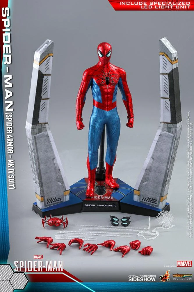 Sideshow and Hot Toys present Spider-Man (Spider Armor – MK IV Suit) Sixth Scale Collectible Figure! Incorporated with stunning luminous reflective web pattern which appears under specialized LED lighting exposures Hot Toys has re-created the powerful and technologically impressive Spider Armor – MK IV Suit that accentuates its visual effect with incredible details.
