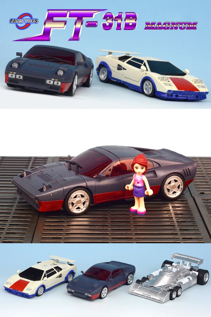 FT-31B Magnum is latest part of the stunt vehicle combiner set. Magnum converts from a sports vehicle to robot and back. Comes with weapons and accessories!