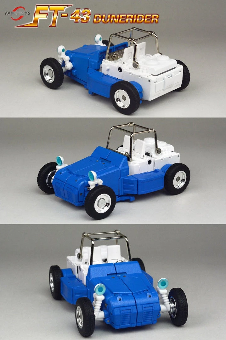 Fans Toys FT-43 Dunerider is a masterpiece scaled dune buggy which converts to robot and back. FT-43 Dunerider is made of die-cast parts and ABS plastic. This figure comes with weapons and accessories. (Other figures sold separately)