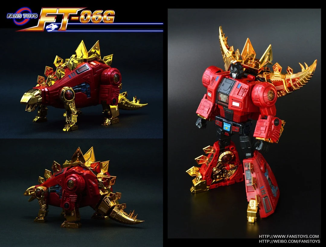 Fans Toys has added the third figure to it’s line of Iron Dibots, a series or robots that convert to Dinosaurs. The third Dinobot like figure from Fans Toys is FT-06 Sever. This awesome robot transforms from a Stegosaurus to a robot and back. This limited edition of 500 pcs, FT06G is a special red colored repaint of the popular toy.
