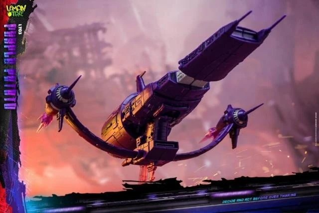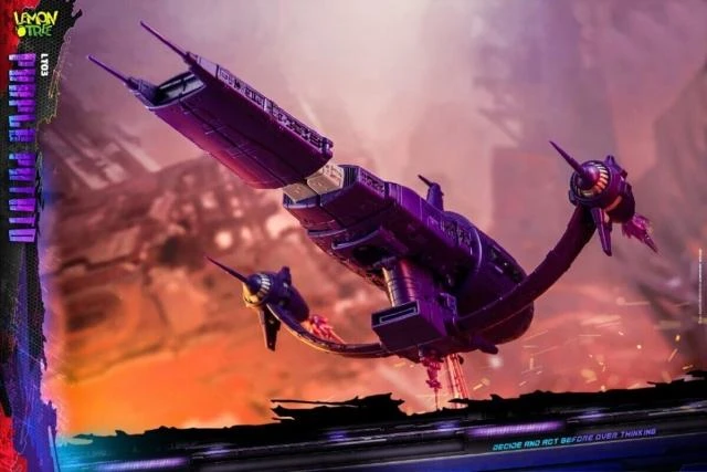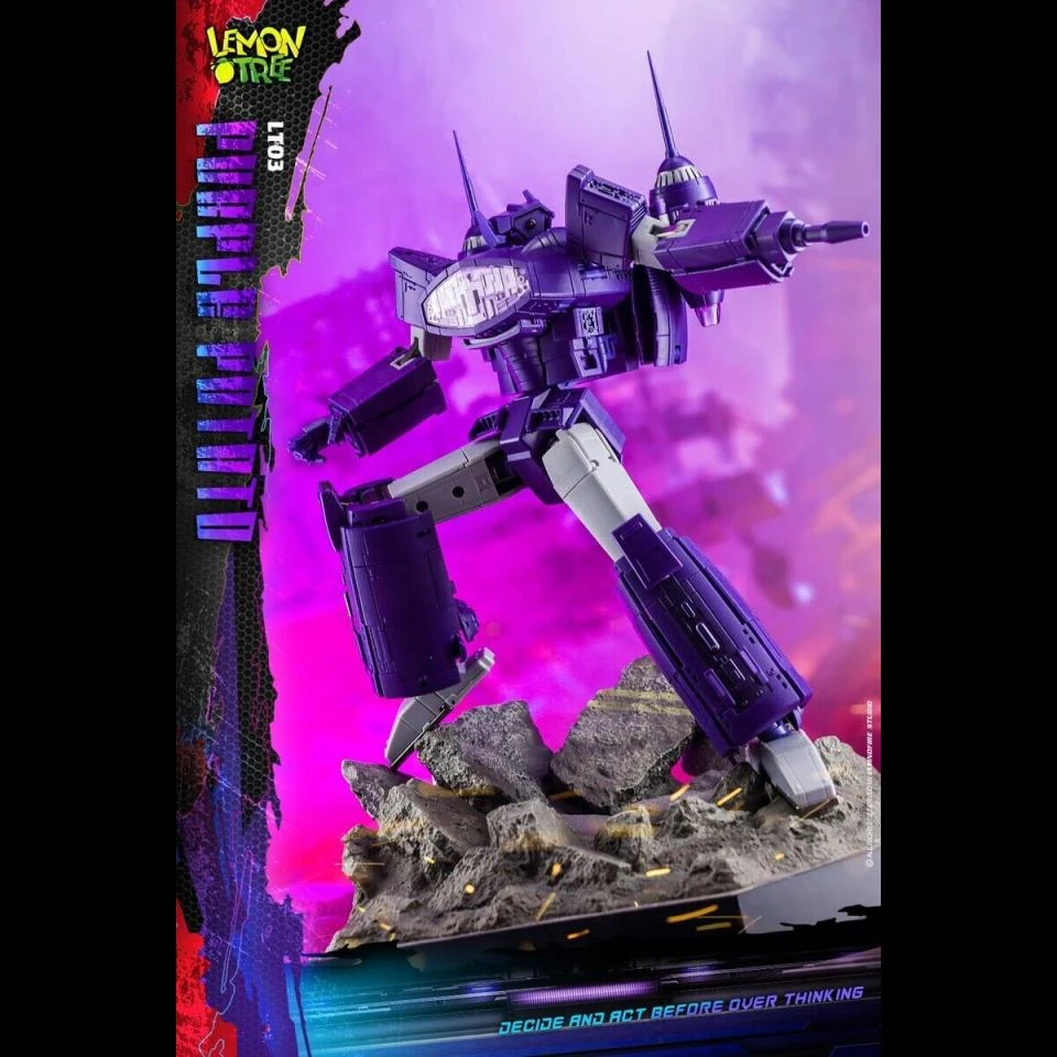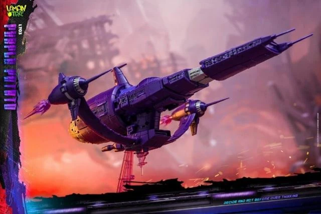 The new third party company Lemon Tree proudly presents the LT-03 Purple Potato! Lemon Tree shows off their interpretation of Shockwave that features his classic robot form with an alt-mode that’s an homage to the Revenge, Galvatron’s Spaceship in Transformers The Movie (1986).