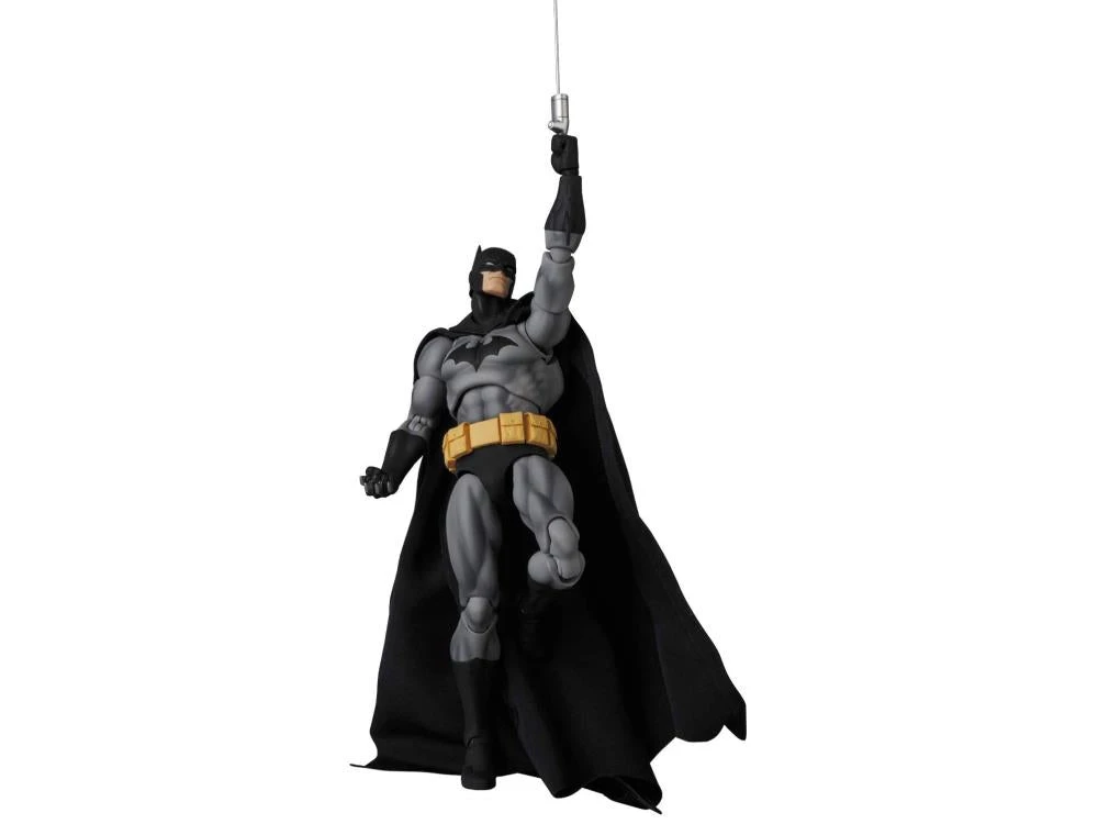 Based on the Batman: Hush story line, the MAFEX Batman variant is a fully articulated figure with a black cowl and cape. Batman features a poseable wired fabric cape and several accessories including a gargoyle display stand.