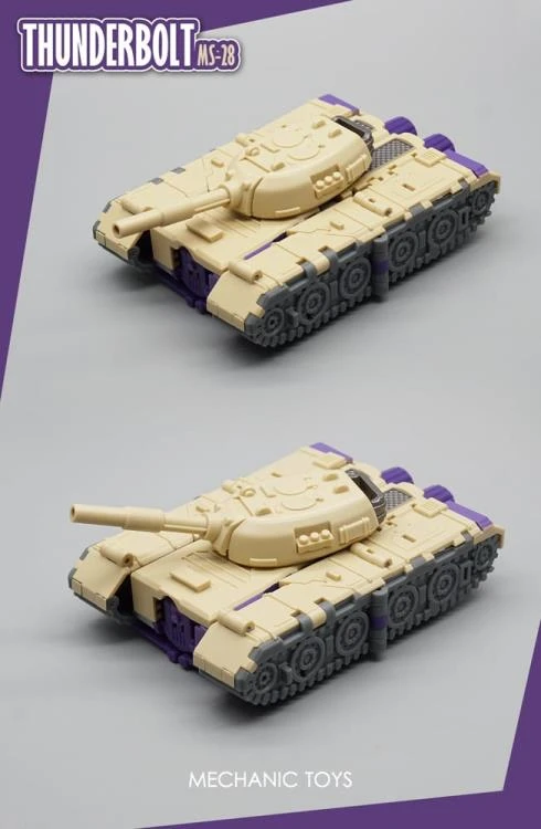 From Mechanic Studio, the MS-28 Thunderbolt figure stands about 5 inches tall and can transform from a robot to either a tank or a jet.