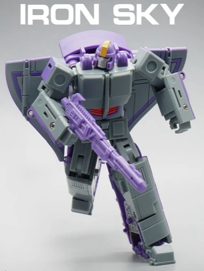 From Mechanic Studio, the MS-20 Iron Sky figure stands at about 4 inches tall, transforms from a robot to either a train engine or space shuttle, and includes several pieces of weaponry.