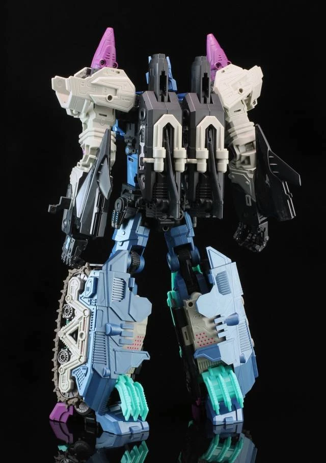 Carnifex stands at 12″ from head to toe. Being a msssive butcher, he will be able to rival combiner figures such as Feral Rex. His body can split-transform to a jet and a tank, these 2 vehicle modes can also combine to form a larger spaceship.