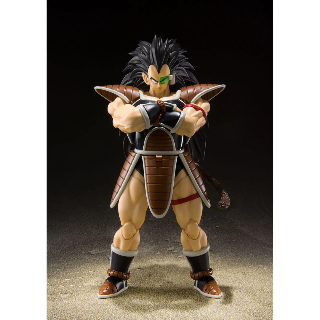 | “Power level… only 5. What a planet!” From S.H.Figuarts comes Raditz, brother of Son Goku a.k.a. Kakarot, from the legendary “Dragon Ball Z”. In addition to his normal face, three other exchangeable facial expression parts – grinning face, screaming face, and surprised face – are included, as well as posable arm and tail parts. |