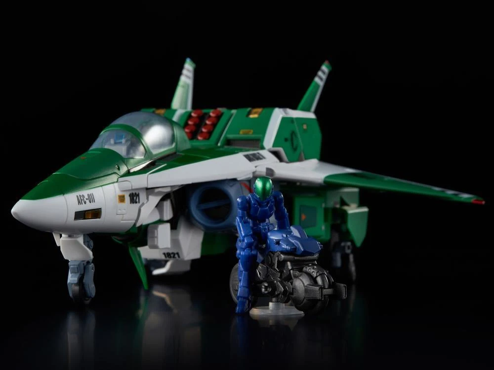 Continuing the Genesis Climber Mospeada line-up, Sentinel presents the Riobot AFC-01I Legioss. Standing over 8 inches tall, Legioss features die-cast parts for durability, and can transform between Fighter, Diver, and Soldier forms with ease!