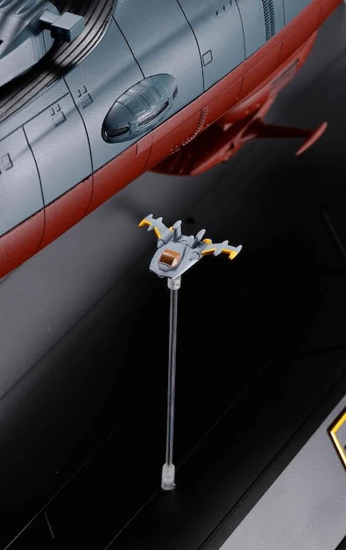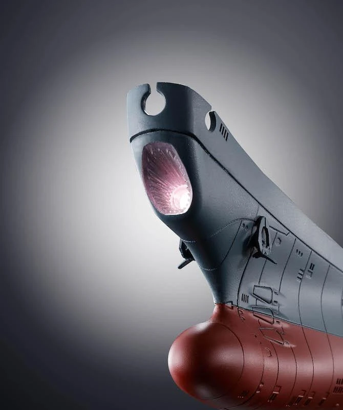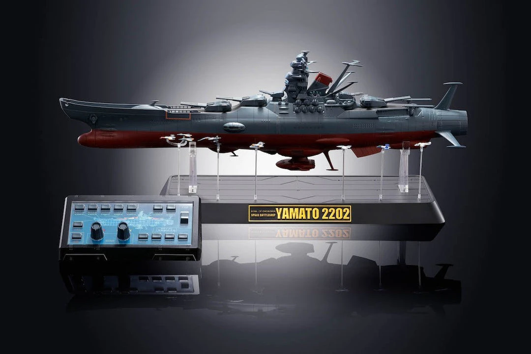 The massive namesake of “Space Battleship Yamato 2202” joins the SOUL OF CHOGOKIN series! It’s packed with features, including light-up Wave Motion Gun, engine, and bridge, plus motorized turrets. A remote control lets you play key lines recorded by the voice actors for Susumu Kodai and Yuki Mori, plus a variety of other effects and music. The set includes the Yamato itself, a remote control, eight miniature fighters (Cosmo Zero, Tiger I, Tiger II (x2), Tsvarke, Cosmo Seagull, and “Ki” type search craft), detachable wings, rocket anchors (L/R), display stand, display stand arm set, and test batteries.