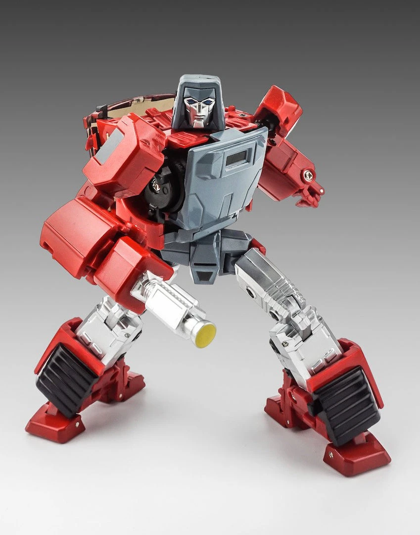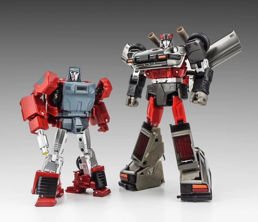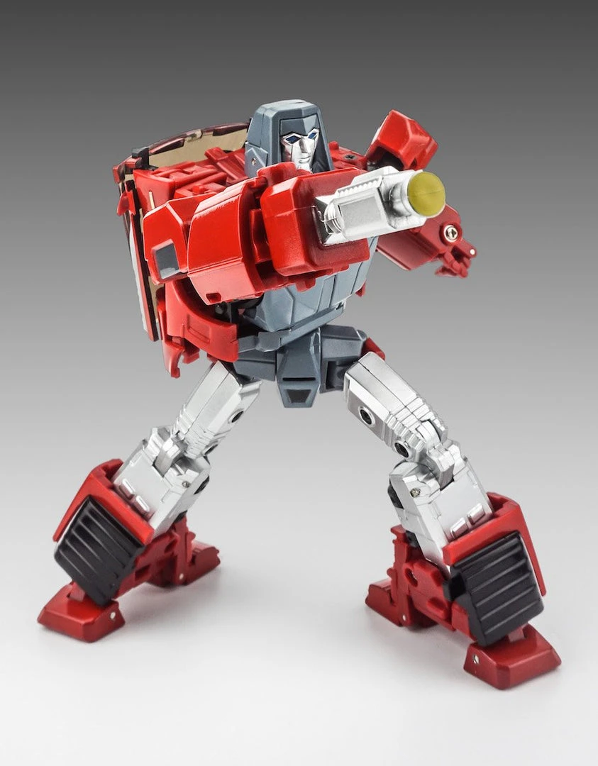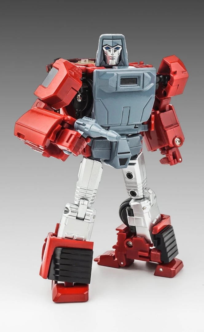 XTransbot’s latest Masters Mini Series offering will be MMVI Boost. Boost is a red colored robot which converts from a sports vehicle to figure and back! Boost comes with instructions, bio card, weapons, flashlight torch and replacement face. This is the ComiToon version