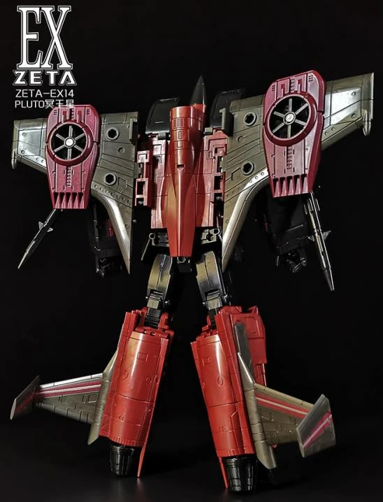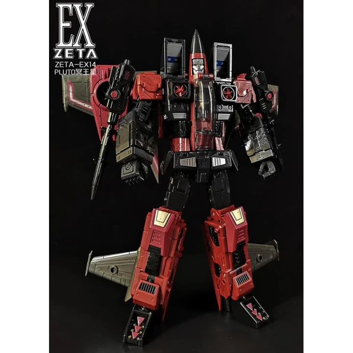 The Zeta EX14 Pluto is a limited edition masterpiece Scale scaled figure that converts from a fighter jet to robot and back. Pluto stands approx 8.5 inches tall in robot mode. Comes with weapons and accessories.